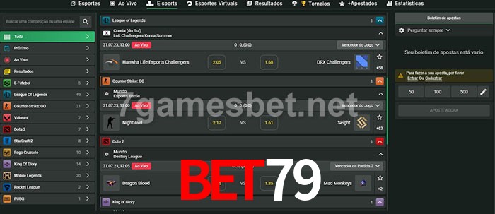 O Bet79 oferece uma grande seleção de opções de apostas em e-sports com probabilidades competitivas